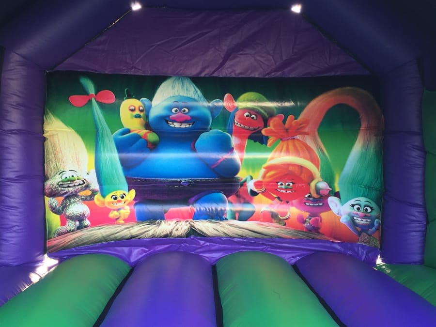BRAND NEW Trolls bouncy castle available for hire throughout Liverpool, Wirral, Widnes, St Helens and all the surrounding areas! Join Poppy, Branch and the rest of the fun loving Trolls on a magical adventure ensuring your child doesn't loose their dazzling smile!