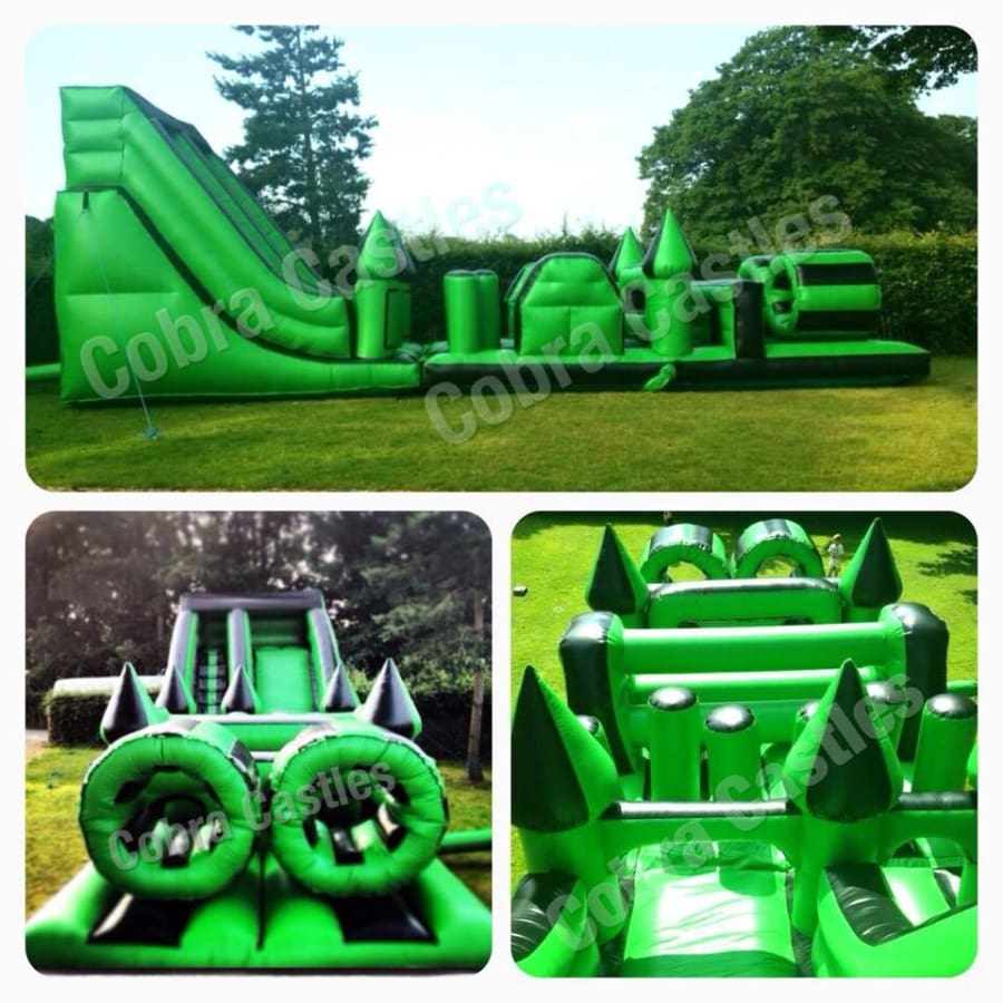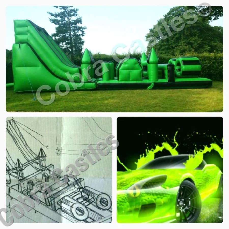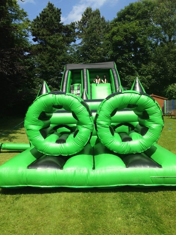 This is the LAMBORGHINI of assault courses and comes with a HUGE MEGA SLIDE attached, Our 40ft assault course is awesome and guaranteed to tire out all adults and children! Colours & design vary!