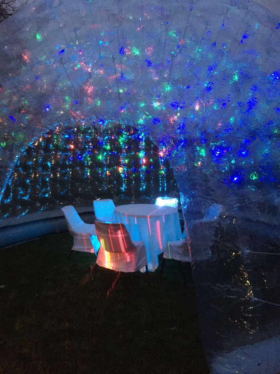 Our BRAND NEW Crystal igloo Nightclub will just amaze you and your guests, this Diamond shaped nightclub just looks amazing in the evenings as the disco lighting revolves around the whole area! This price includes a table, disco lighting and a music system that connects via bluetooth, creating everything you need for a top quality evening! Ground sheets applied if requested! If you require anymore information please contact us we look forward to hearing from you.