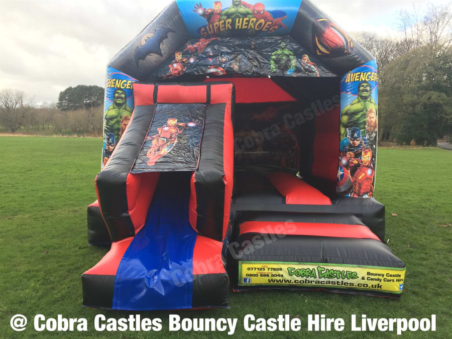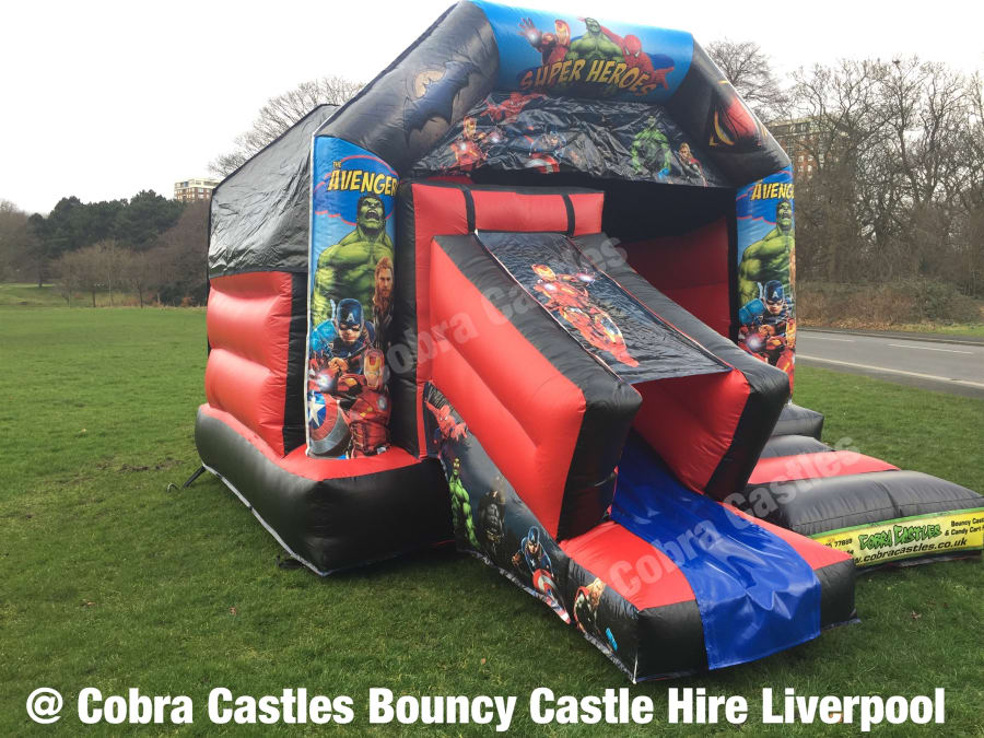Do you like the Avengers? Then check out our Avengers bounce and slide combination castle! It's got a bouncy castle area as well as an inflatable slide, so kids and adults can enjoy hours of entertainment. It's also covered in beautiful and striking images of the Avengers - they've taken a break from saving the world to come to your event in Liverpool.