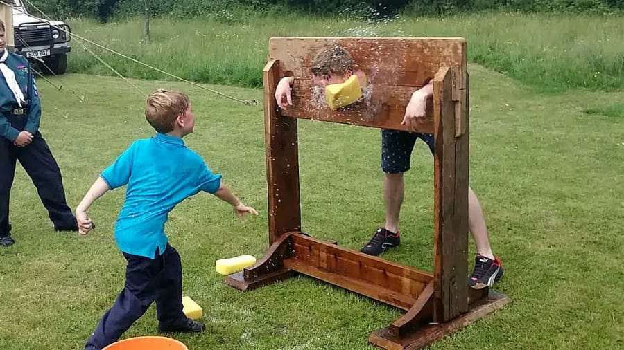 Hire our Wooden Stocks for your next fundraising event, great fun for everyone. Place your participant into the freestanding wooden stocks frame and then throw your wet sponges!! This is proving to be very popular in and around the Liverpool area. Frame size approx 5ft T x 4ft W Bucket and sponges and safety goggles are supplied along with wooden stock! Ideal attraction for fetes, summer fayres, pubs, football tournaments, schools, fun days, fundraising and community events and more, it’s a real crowd drawer game and everyone will want to watch or take part.
