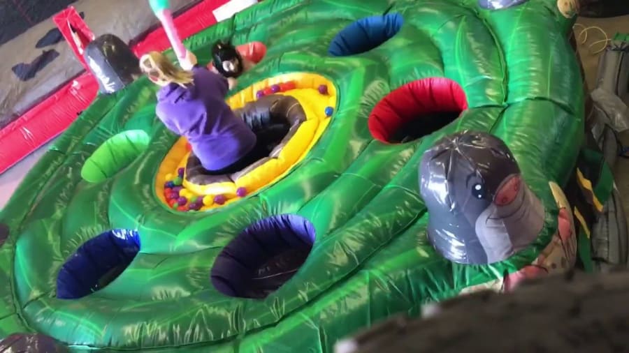 All players will crouch down inside the inflatable underground, and pop their head through the holes at the top of the inflatable and try to grab as many plastic balls as possible. The Player who is attempting to stop the other six Players from collecting balls will try to protect the balls with a soft toy hammer. The 'moles' must grab as many balls as possible and place them in their net. At the end of the game, the user with the most amount of balls in their net wins YAY! It's that simple but so much fun!