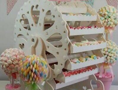 This package is solely for the hire of the Ferris Wheel , this would enable you to decorate your sweet Ferris wheel as you wish, also you can add mini cupcakes or any other sweet you desire; sweets , sweet bags, scoops and tongs (Not included)